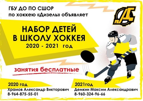 Спортивная школа олимпийского резерва по хоккею «Дизель» проводит набор детей 2020 — 2021 гг.Занятия бесплатные.